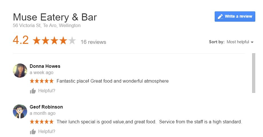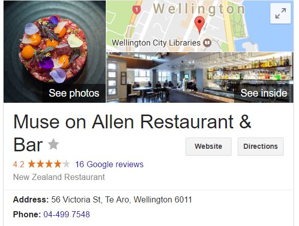 you just need to do a google the picture which comes up puts muse on Allen at 56 Victoria street click on the reviews and you will see that the reviews are for Muse eatery