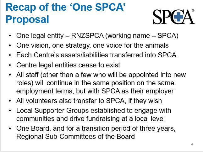 The SPCA  is  voting on the One SPCA concept this week this is their power point