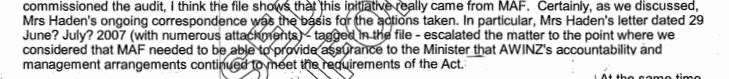 they also state that MAF needed to provide assurances to the minister that AWINZ accountability met requirements of the act.. how could they possibly have achieved this when the organisation was a total fiction ? This is Wells OIA request