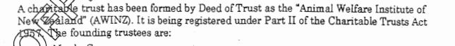 - The first plaintiffs are the current trustees of The Animal Welfare Institute of New Zealand,