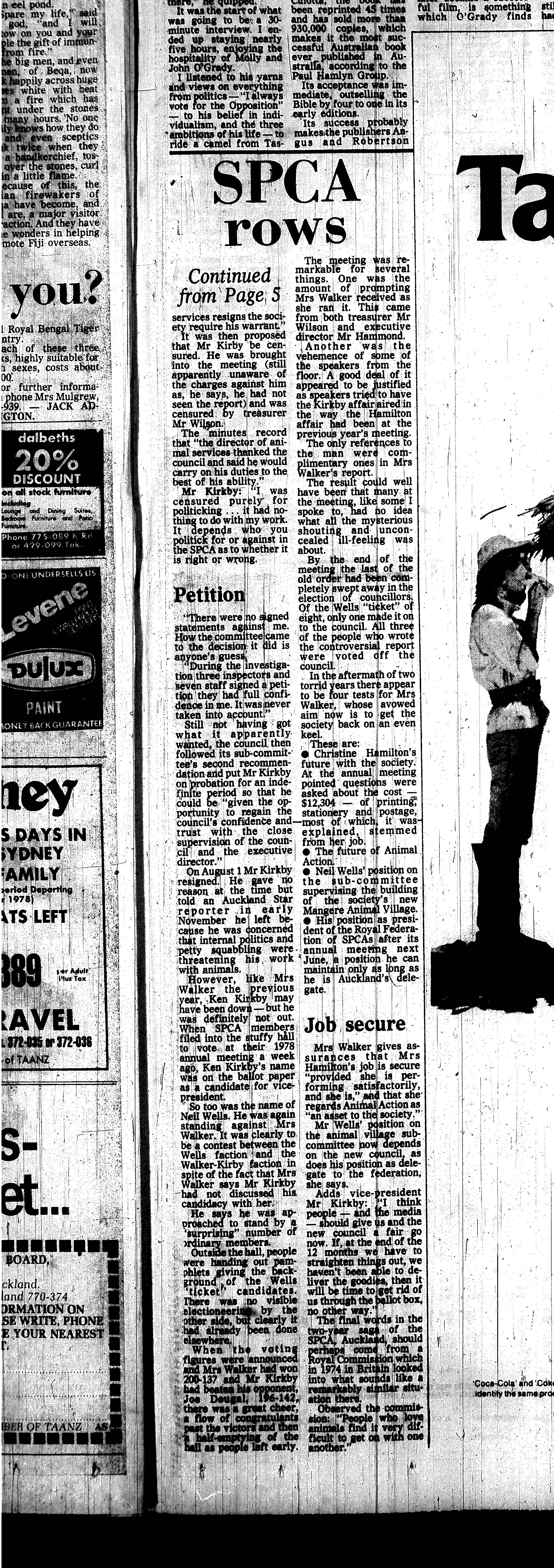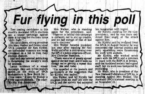 The SPCA’s Public relations officer mentioned in the article along side is now none other than Mrs Christine Wells
